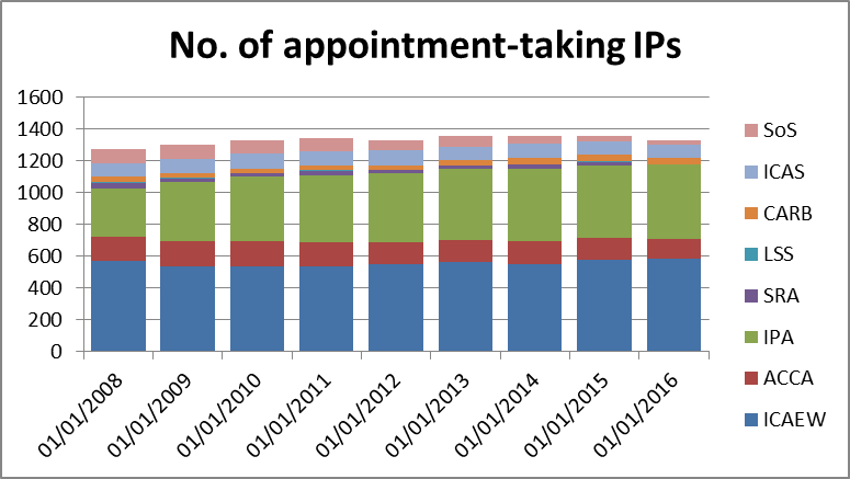 I guess it was inevitable: no IP welcomes the hassle of switching authorising body and word on the street has always been that being authorised by the SoS is a far different experience to being licensed by an RPB. Therefore, I think that the withdrawal from authorising by the SoS (even with a run-off period) courtesy of the Deregulation Act 2015 and the Law Societies was likely to affect the IP numbers.