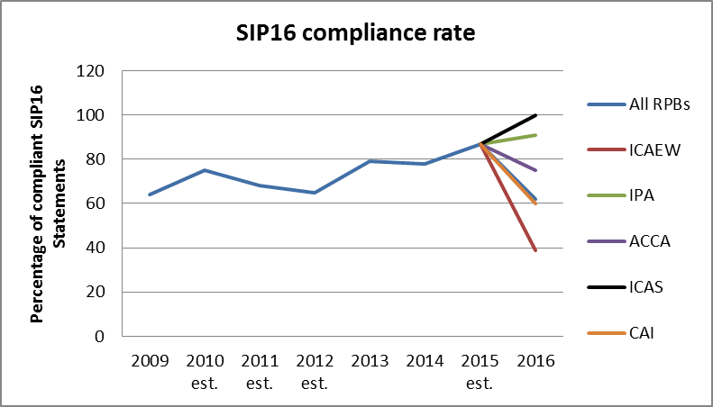 As you can see, the rates range from ICAS’ 100% of SIP16 statements wholly compliant to the ICAEW’s 39%.