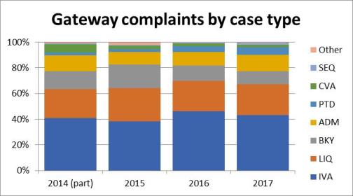 - This may be partly due to the Insolvency Service’s sifting process: almost half of all complaints put to the Gateway in 2017 were sifted out