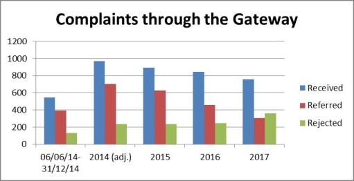 - Good news: 2017 saw half as many complaints referred through the Gateway as 2015