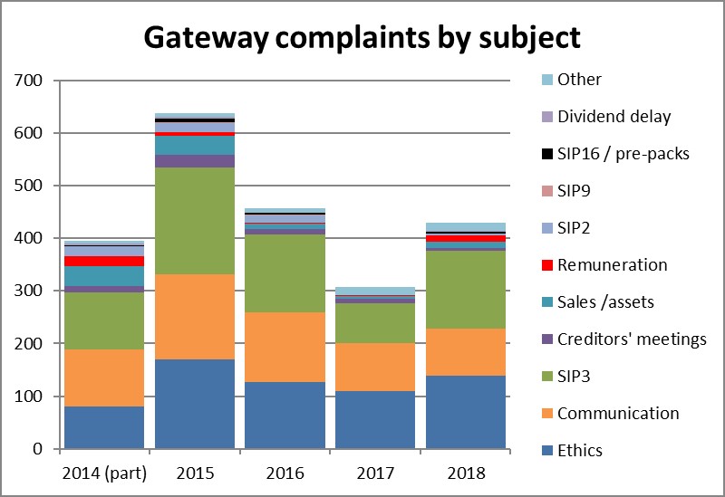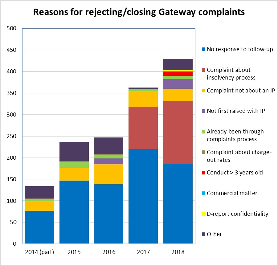 In their 2018 report, the Insolvency Service added a number of new reasons for rejection/closure, which personally has helped me to understand the operation of the Gateway better.  For example, I hadn’t appreciated that complaints about conduct that happened over 3 years ago are rejected.