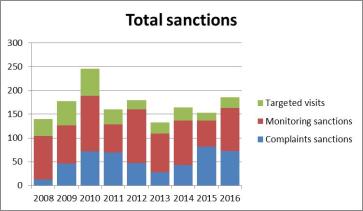 2018 is the first year (in the period analysed) in which no monitoring visit resulted in a plan for improvement. On the other hand, the number of penalties/referrals for disciplinary/investigation action doubled.