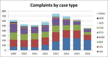 What this and the previous graph show quite dramatically, though, is that last year the ICAEW seemed to issue far fewer sanctions per IP than the IPA. As mentioned in my last blog, the IPA does license a large majority of the VIP IPs and there were more complaints last year about IVAs than about all the other case types put together. One third of the published sanctions also were found against VIP IPs.